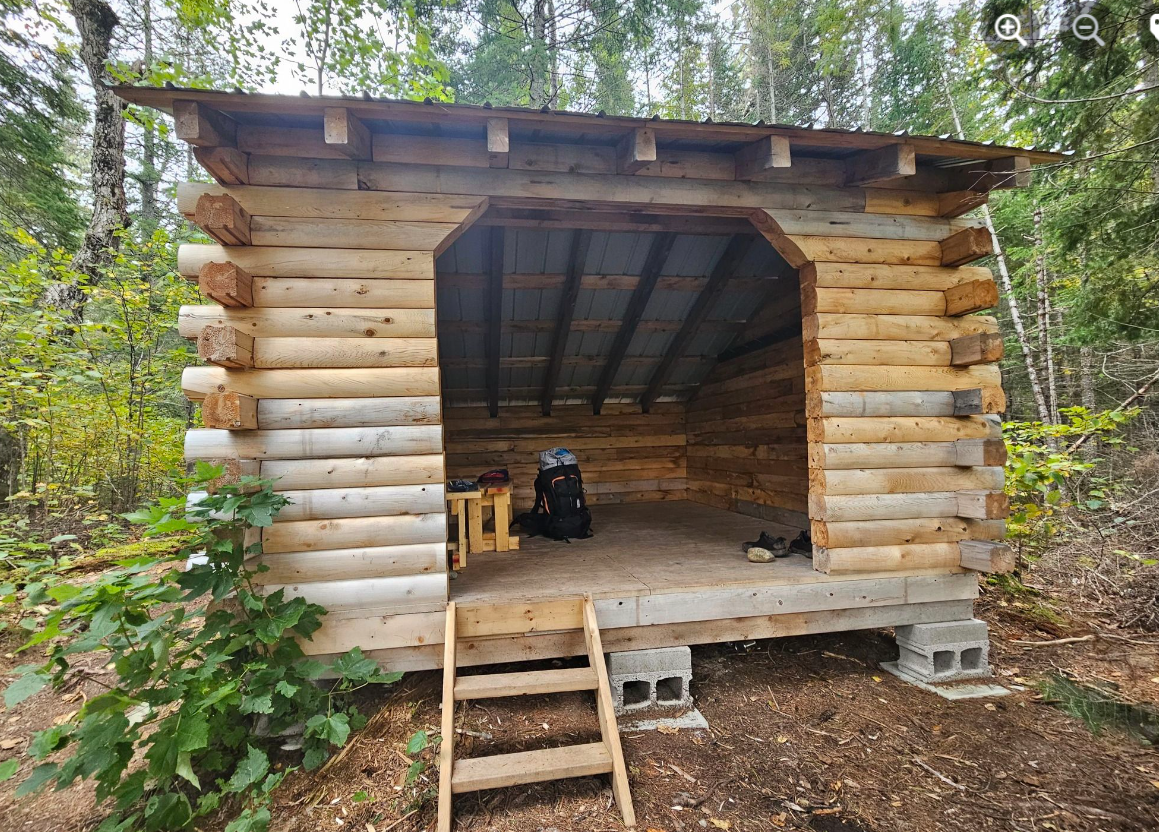 La SNMT dispose de 8 refuges. Construits en rondins de cèdre, ils ressemblent à un appentis avec un mur ouvert aux éléments. Chaque refuge peut loger 6 randonneurs qui déposent leurs matelas et sacs de couchage sur le sol. Les abris sont équipés d’une table pliante, de trois bancs, de crochets muraux et d’un balai.